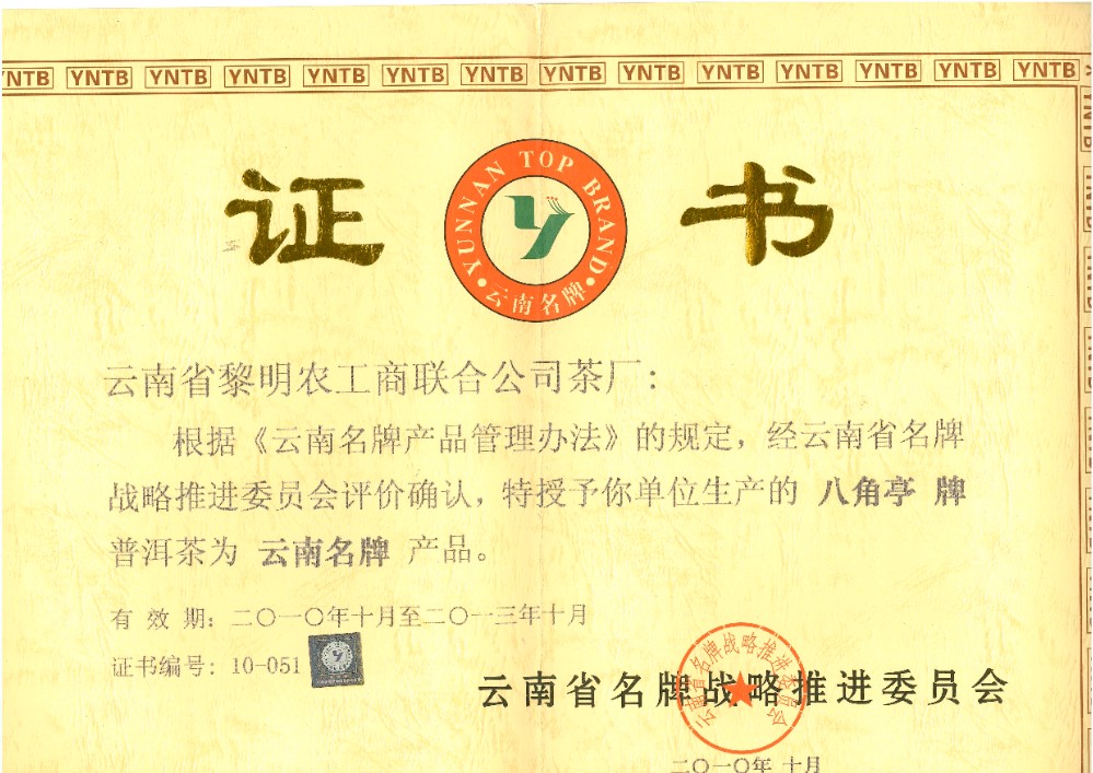 | 發(fā)證機(jī)構(gòu): | 云南省名牌戰(zhàn)略推進(jìn)委員會(huì) | 發(fā)證時(shí)間 : | 2010-10-01 |