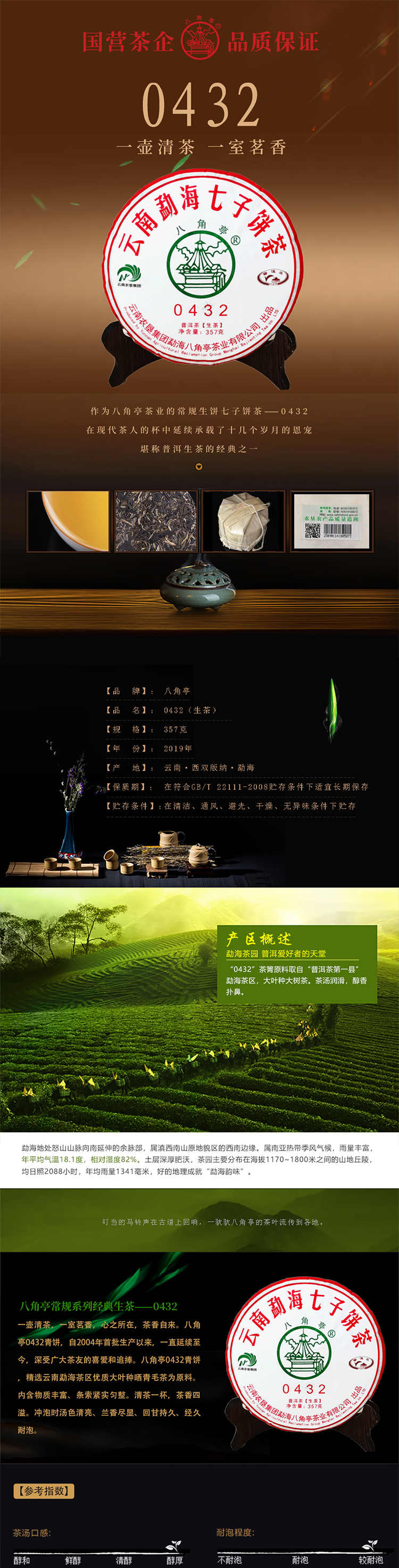 云墾茶業(yè)集團下屬茶葉生產(chǎn)企業(yè)——云南農(nóng)墾集團勐海八角亭茶業(yè)有限公司原名黎明茶廠,是我國歷史最為悠久的茶企之一,曾位列“中國普洱茶十大知名品牌”“十大最受歡迎茶葉品牌”、“中國普洱茶十大暢銷品牌”中,成為今天市場上最有影響力的品牌之一。公司產(chǎn)品獲得“綠色食品”、ISO9001、 HACCP和云茶品牌(YC)4項認證,連續(xù)獲得“云南名牌農(nóng)產(chǎn)品”“云南名牌產(chǎn)品”“云南省著名商標”等品牌榮譽,公司生產(chǎn)的多款普洱茶在歷次專業(yè)評比中多次獲得特等金獎和金獎。在2018第五屆中國企業(yè)五星品牌論壇上,云南農(nóng)墾集團勐海八角亭茶業(yè)有限公司上榜中國普洱茶行業(yè)影響力品牌——“金芽獎”,公司負責(zé)人陳勝軍先生獲“陸羽獎”,被授予2017“國際十大杰出茶人”榮譽稱號。