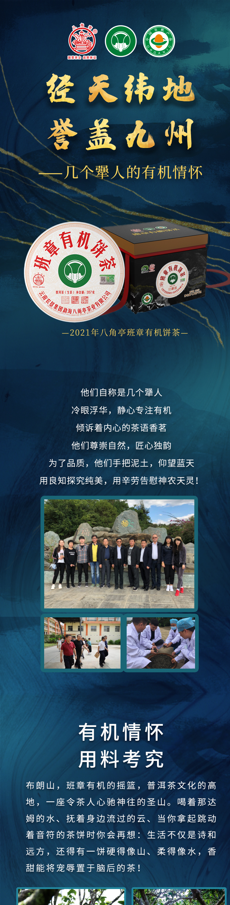 云墾茶業(yè)集團(tuán)下屬茶葉生產(chǎn)企業(yè)——云南農(nóng)墾集團(tuán)勐海八角亭茶業(yè)有限公司原名黎明茶廠(chǎng),是我國(guó)歷史最為悠久的茶企之一,曾位列“中國(guó)普洱茶十大知名品牌”“十大最受歡迎茶葉品牌”、“中國(guó)普洱茶十大暢銷(xiāo)品牌”中,成為今天市場(chǎng)上最有影響力的品牌之一。公司產(chǎn)品獲得“綠色食品”、ISO9001、 HACCP和云茶品牌(YC)4項(xiàng)認(rèn)證,連續(xù)獲得“云南名牌農(nóng)產(chǎn)品”“云南名牌產(chǎn)品”“云南省著名商標(biāo)”等品牌榮譽(yù),公司生產(chǎn)的多款普洱茶在歷次專(zhuān)業(yè)評(píng)比中多次獲得特等金獎(jiǎng)和金獎(jiǎng)。在2018第五屆中國(guó)企業(yè)五星品牌論壇上,云南農(nóng)墾集團(tuán)勐海八角亭茶業(yè)有限公司上榜中國(guó)普洱茶行業(yè)影響力品牌——“金芽獎(jiǎng)”,公司負(fù)責(zé)人陳勝軍先生獲“陸羽獎(jiǎng)”,被授予2017“國(guó)際十大杰出茶人”榮譽(yù)稱(chēng)號(hào)。