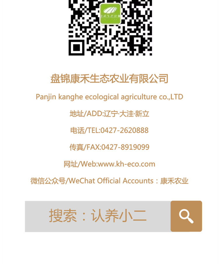 盤錦康禾生態農業有限公司立足于傳統農業的改革和創新,立志做國人放心的生態農產品。